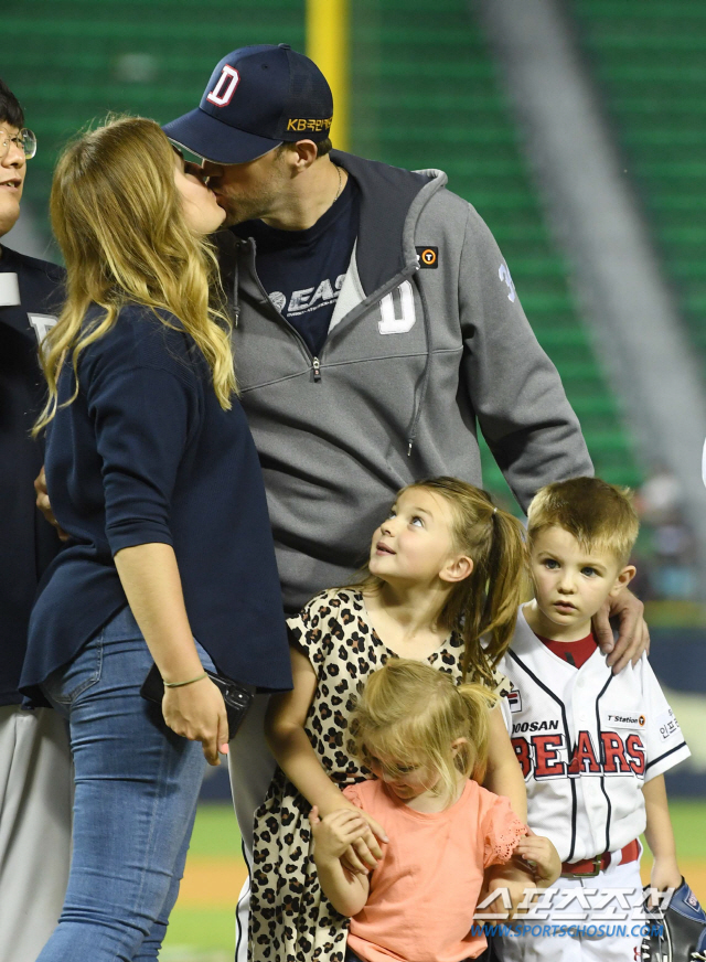 2019 KBO 리그 두산 베어스와 LG트윈스의 경기가 14일 서울 잠실야구장에서 열렸다. 팀을 승리로 이끈 선발투수 린드블럼이 MVP 인터뷰를 가족들과 함께 하고 있다. 잠실=최문영 기자 deer@sportschosun.com /2019.06.14/
