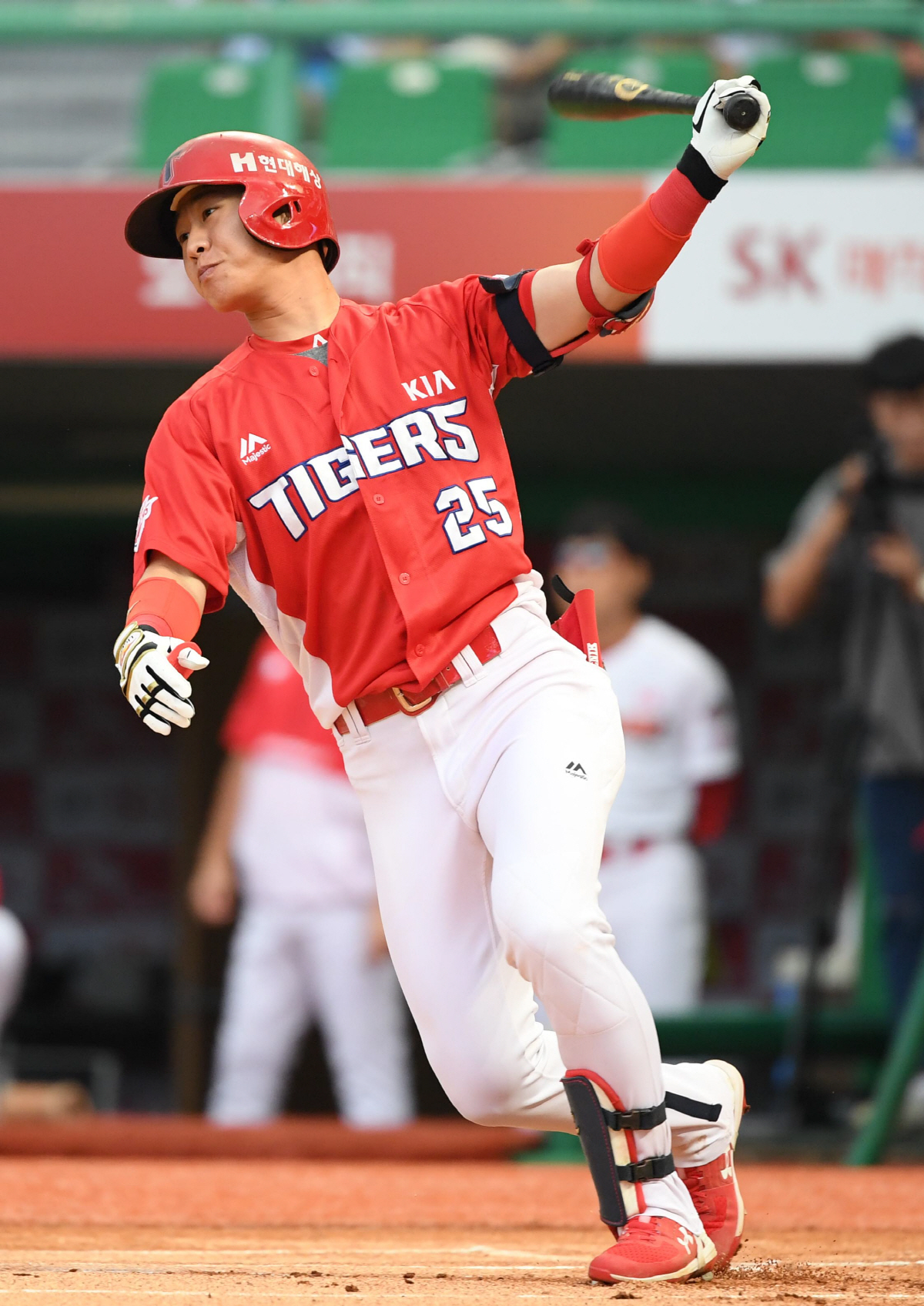 그 사이를 젊은 선수들이 잘 파고들었다. '히트상품' 박찬호는 우선 수비력으로 자신의 매력을 어필했다. 고질적 부상에 이어 현역은퇴까지 결정한 이범호의 3루수 공백을 제대로 메웠다. 여기에 '멀티' 능력을 갖췄다. 유격수 수비도 거뜬하다. 박찬호란 '수비 괴물'이 나타나자 박 감독대행은 수비 포지션 이동이라는 카드도 꺼내들 수 있게 됐다. 들쭉날쭉한 타격이 다소 아쉽긴 하지만 최근 또 다시 타격감을 끌어올리고 있다.