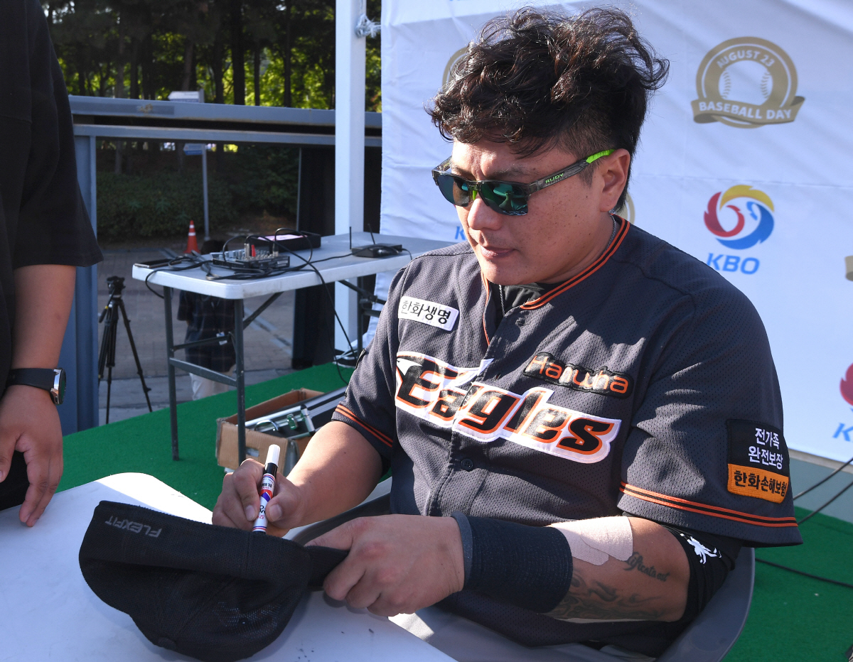 [인천=스포츠조선 권인하 기자]올스타전 사인회가 열린 듯했다. 골든글러브 시상식이나 올스타전이 아니면 보기 힘든 SK 와이번스와 한화 이글스의 슈퍼스타들이 '야구의 날'을 기념하는 사인회에 나타났다. SK의 최 정과 김광현, 한화의 김태균 정우람이 그 주인공이었다.