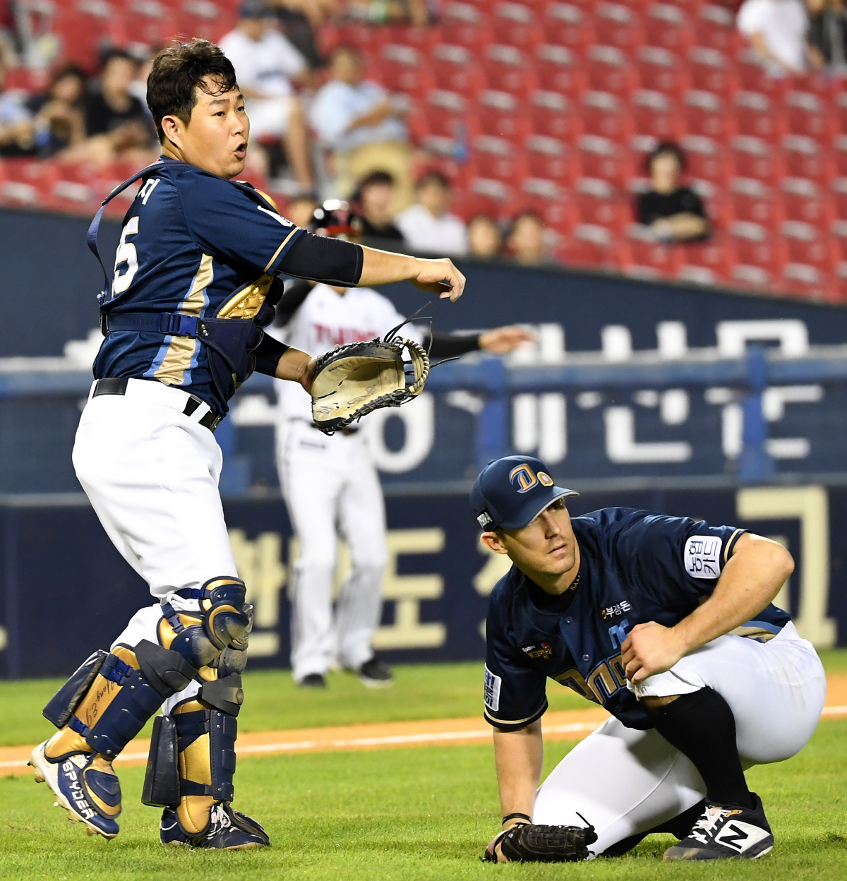 2019 KBO리그 LG 트윈스와 NC 다이노스의 경기가 23일 오후 서울 잠실야구장에서 열렸다. NC 양의지, 프리드릭. 잠실=박재만 기자 pjm@sportschosun.com/2019.08.23/
