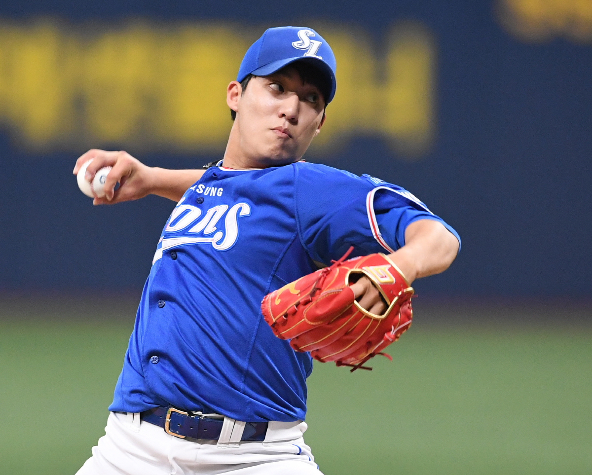 [부산=스포츠조선 박상경 기자]삼성 라이온즈 신인 투수 원태인이 롯데 자이언츠전에서 패전 위기에 몰렸다.