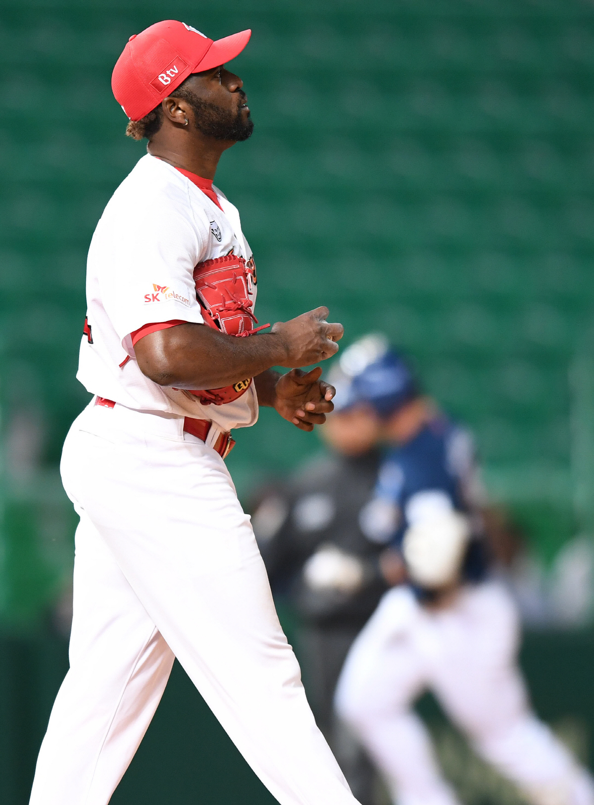 2019 KBO리그 NC 다이노스와 SK 와이번스의 경기가 18일 오후 인천 SK행복드림구장에서 열렸다. 4회초 2사 2루 NC 스몰린스키가 투런포를 쳤다. 연타석 홈런을 허용한 소사가 허탈해하고 있다. 인천=정재근 기자 cjg@sportschosun.com/2019.09.18/