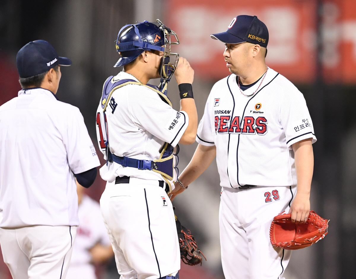 선발 투수 유희관이 단 1점으로 막아낸 후 8회 2아웃까지 마운드를 지켰다. 두번째 투수로 등판한 최원준이 박찬호에게 안타와 도루를 허용했으나 실점 없이 8회를 마쳤다. 함덕주는 9회에 등판해 터커에게 솔로 홈런을 허용했지만 이미 승패를 뒤집기에는 역부족이었다.