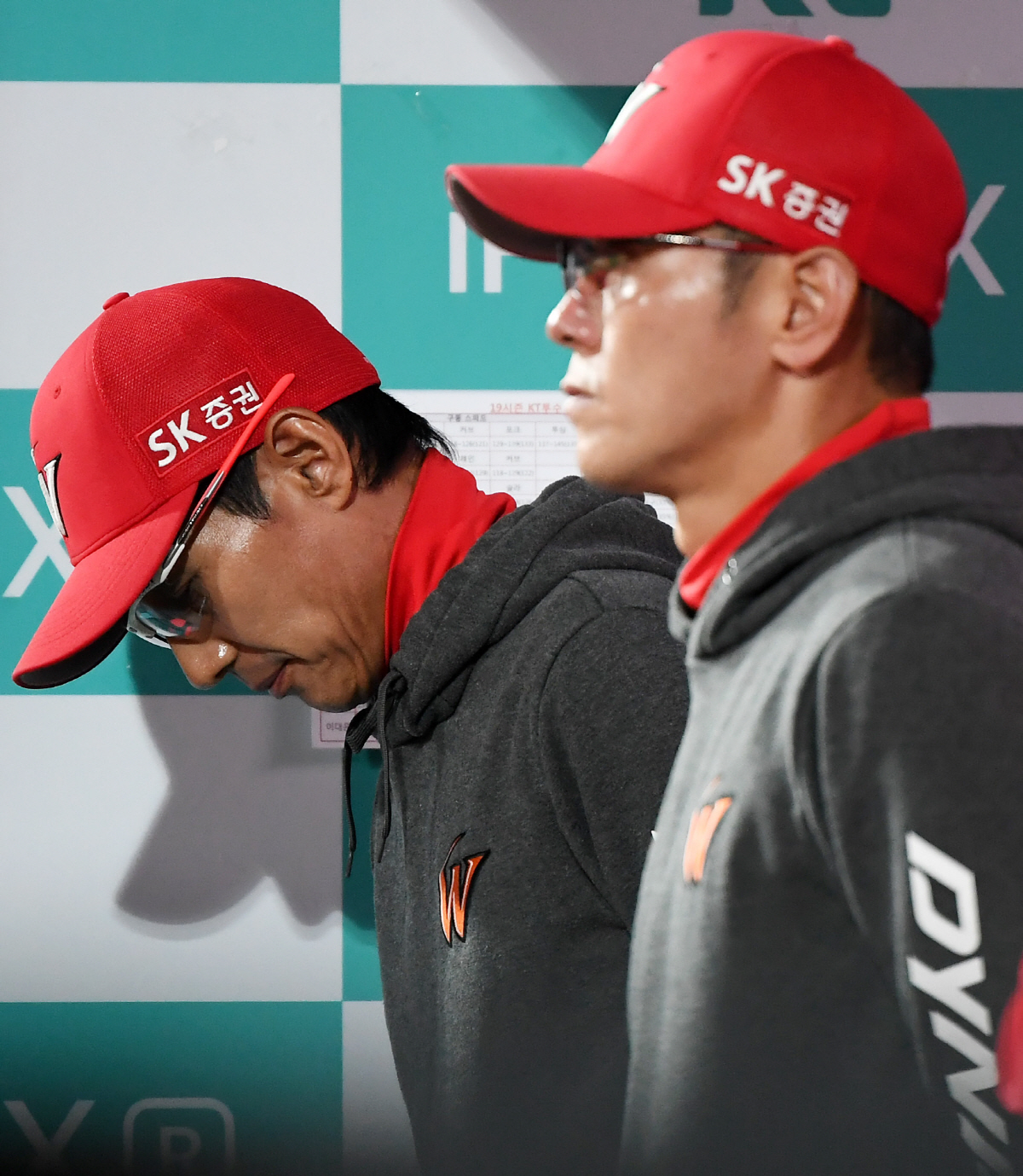 1위 팀 답지 않은 경기력이었다. SK는 이날 경기에서도 8안타-3득점에 그쳤다. 안타로 생산한 타점은 단 1점도 없었다. 설상가상으로 필승조가 무너지면서 연패를 끊지 못했다. 수원=선수민 기자 sunsoo@sportschosun.com