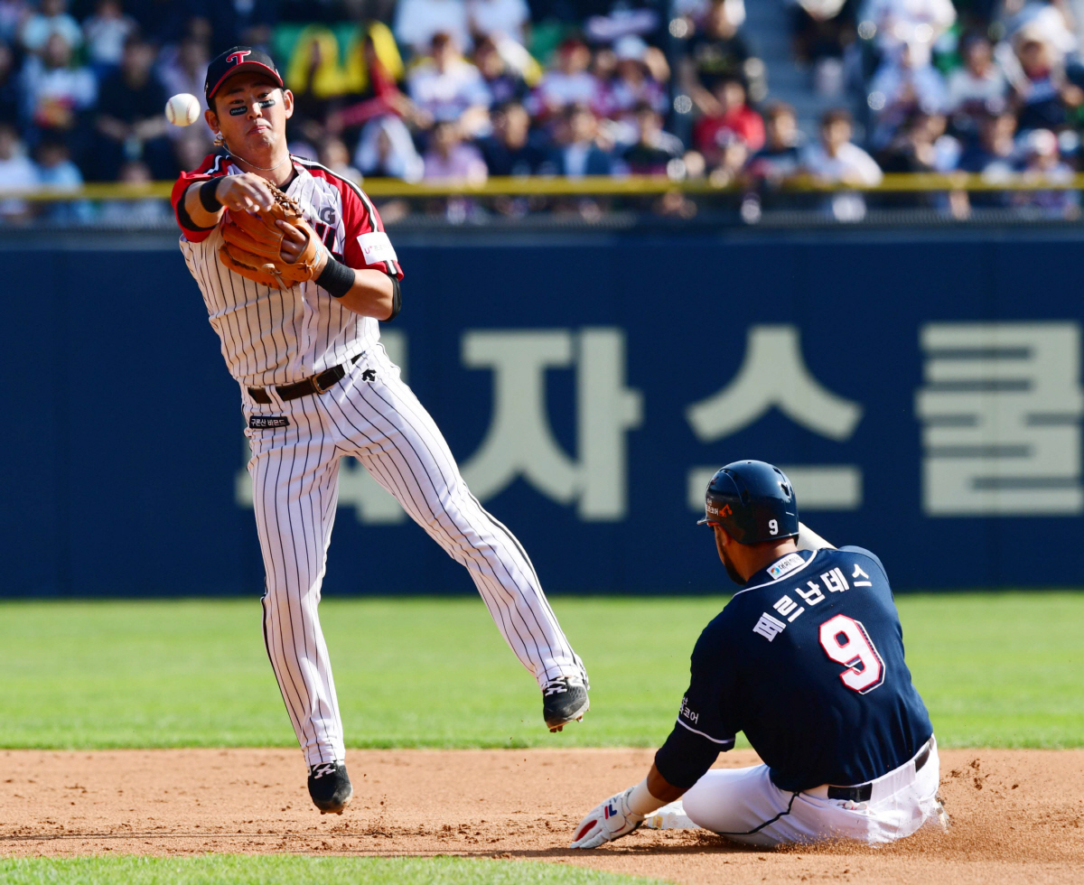 2019 KBO리그 LG트윈스와 두산베어스의 경기가 29일 서울 잠실야구장에서 열렸다. 두산 페르난데스가 4회초 무사 1루에서 박건우 땅볼때 2루에서 포스아웃 되고 있다. 잠실=최문영 기자 deer@sportschosun.com /2019.09.29/