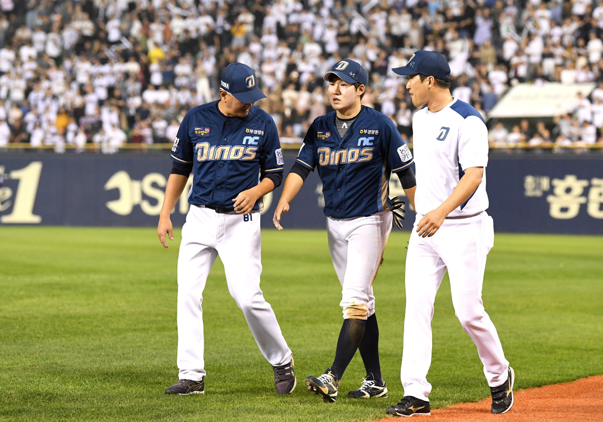 1일 서울 잠실야구장에서 KBO리그 두산 베어스와 NC 다이노스의 경기가 열렸다. 7회 수비 도중 부상을 당한 NC 박민우 2루수가 교체되고 있다. 잠실=송정헌 기자 songs@sportschosun.com/2019.10.01/