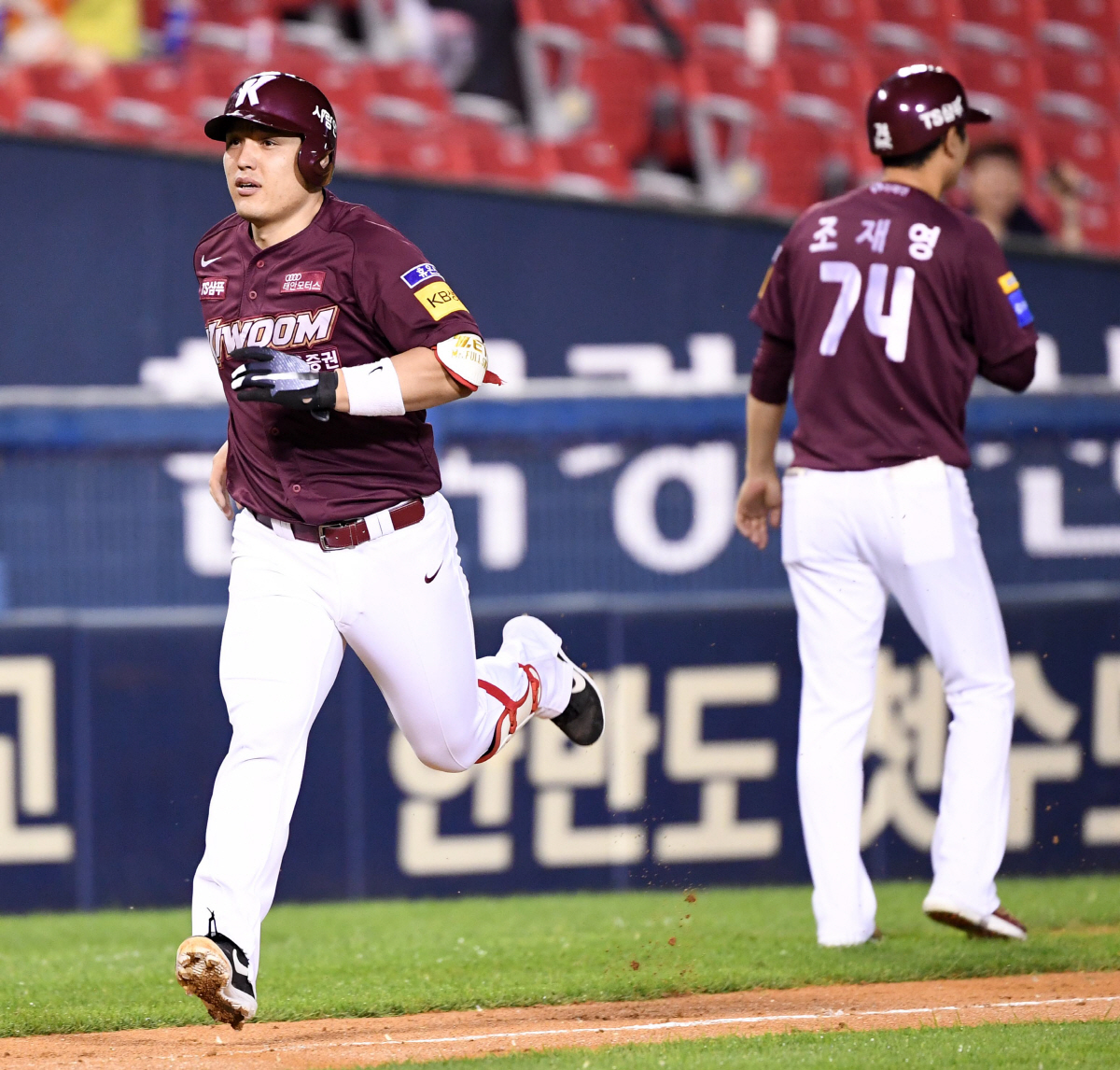 두산 베어스와 키움 히어로즈의 2019 KBO 리그 경기가 3일 잠실구장에서 열렸다. 8회초 대타로 나선 키움 박동원이 솔로홈런을 치고 기쁨을 나누고 있다. 잠실=허상욱 기자 wook@sportschosun.com