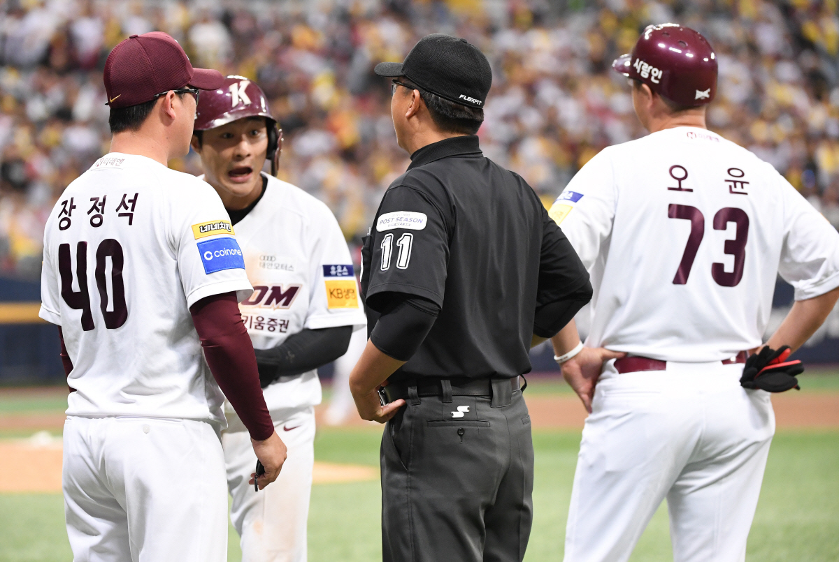 김하성은 8일 고척 스카이돔에서 열리는 LG 트윈스와의 준플레이오프 2차전에 5번-유격수로 선발 출전한다. 전날 2번 타자로 출전한 김하성은 2안타, 1볼넷으로 제 몫을 다했다. 주자로 나간 상황에선 적극적인 주루로 투수를 괴롭혔다. 그러나 8회말 1사 후 볼넷으로 출루한 상황에선 투수 타일러 윌슨의 견제에 아웃됐다. 김하성은 '보크'라며 강력하게 어필했지만, 판정은 번복되지 않았다.