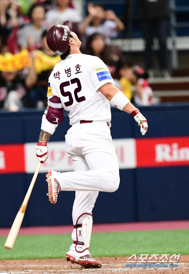 2019 KBO리그 준PO 2차전 키움 히어로즈와 LG 트윈스의 경기가 7일 서울 고척스카이돔에서 열렸다. 키움 박병호가 6회말 1사 2,3루에서 삼진으로 물러나고 있다. 고척=최문영 기자 deer@sportschosun.com /2019.10.07/
