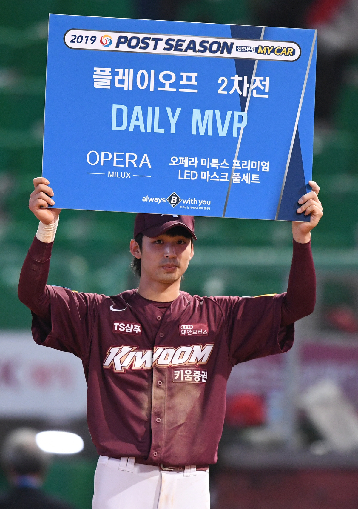 15일 인천 SK행복드림구장에서 KBO리그 PO 2차전 SK 와이번스와 키움 히어로즈의 경기가 열렸다. 키움이 SK에 8대 7로 역전승을 거뒀다. MVP를 차지한 김규민이 수상하고 있다. 인천=송정헌 기자 songs@sportschosun.com/2019.10.15/
