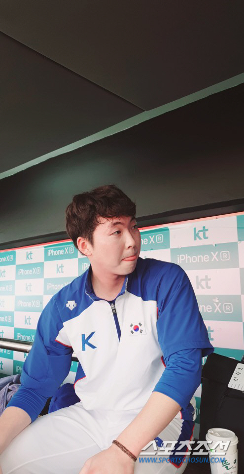 김경문 감독이 이끄는 야구대표팀에 승선한 투수 문경찬(KIA 타이거즈). 훈련 시작 5일 만인 16일 대표팀 투수 중 처음으로 불펜 피칭을 소화했다. 최일언 투수코치가 지켜보는 가운데 KT위즈파크 3루측 불펜에서 힘껏 공을 던졌다. 문경찬의 씩씩한 모습과 자세에 칭찬을 아끼지 않는 김경문 감독은 취재진을 향해 "저 친구는 지금 던지고 싶은 마음이 클 것이다. 제가 가면 아무래도 더 세게 던지게 되니 보시고 이야기 해달라"고 부탁했다.
