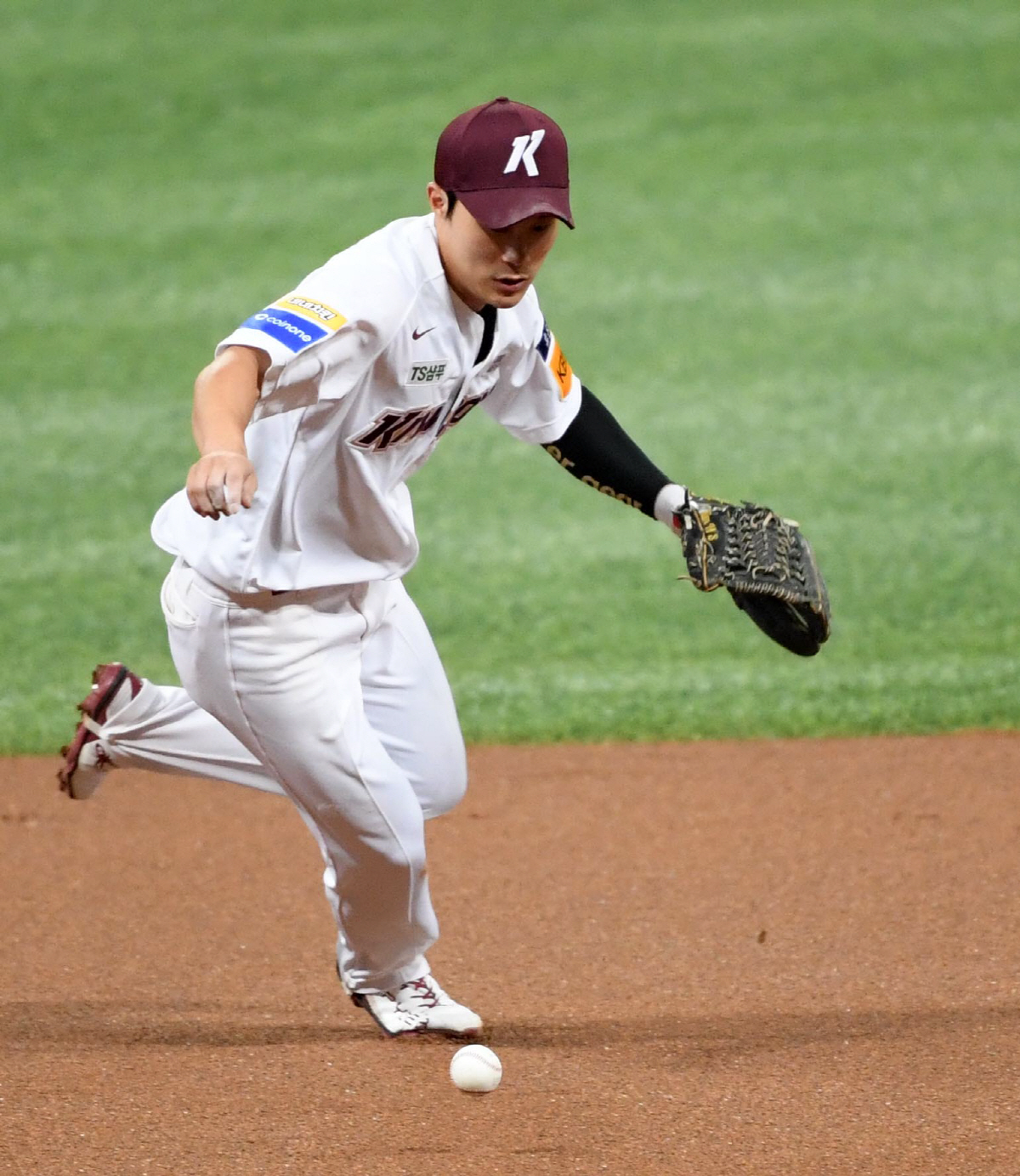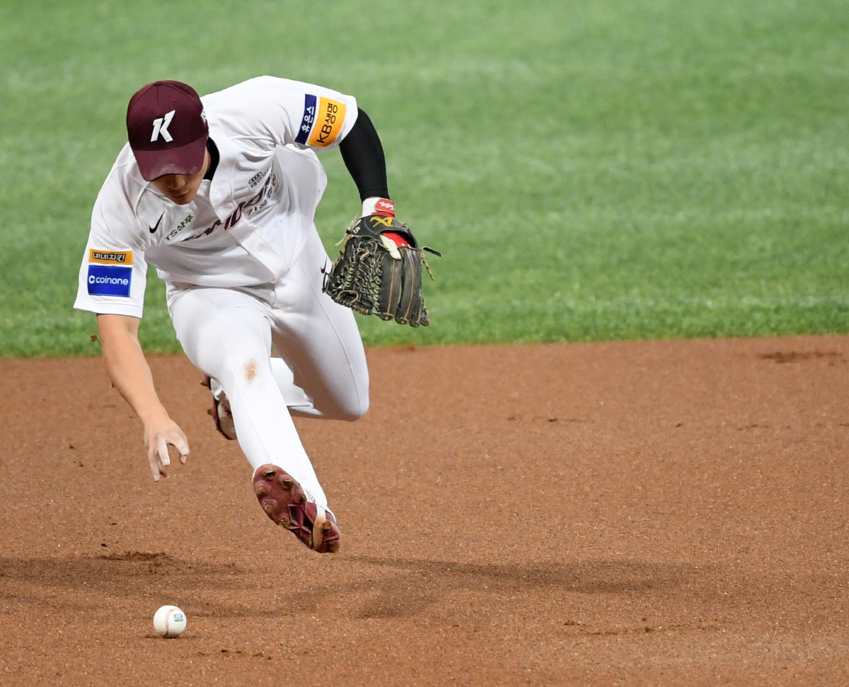 1회초 수비 때 악몽이 찾아왔다. SK 첫 타자 배영섭의 타구를 러닝스로로 던졌지만 1루수 박병호의 오른쪽으로 빠졌다. 박병호의 발이 떨어지면서 세이프. 손쉽게 처리할 수 있는 평범한 타구를 서두르다 실책을 범했다. 2번 로맥의 안타로 무사 1,2루. 3번 최 정이 친 땅볼 타구가 다시 한번 김하성을 향했다. 병살을 시도하려던 김하성은 바운드를 잘못 맞춰 땅에 한번 떨어뜨린 뒤 다시 잡아 1루에서만 타자주자를 잡아냈다. 한번에 캐치했다면 병살이 가능했던 실책성 플레이였다. 2사 3루가 될 상황이 1사 2,3루가 되는 순간.