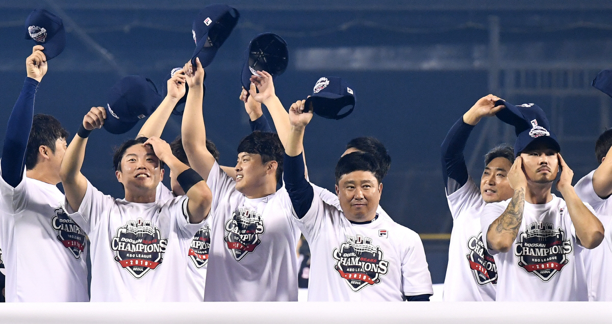 1일 서울 잠실야구장에서 KBO리그 두산 베어스와 NC 다이노스의 경기가 열렸다. 두산이 NC에 6대 5로 역전승을 거두며 2019 시즌 우승을 확정지었다. 우승 세리머니를 펼치고 있는 두산 선수들. 잠실=송정헌 기자 songs@sportschosun.com/2019.10.01/