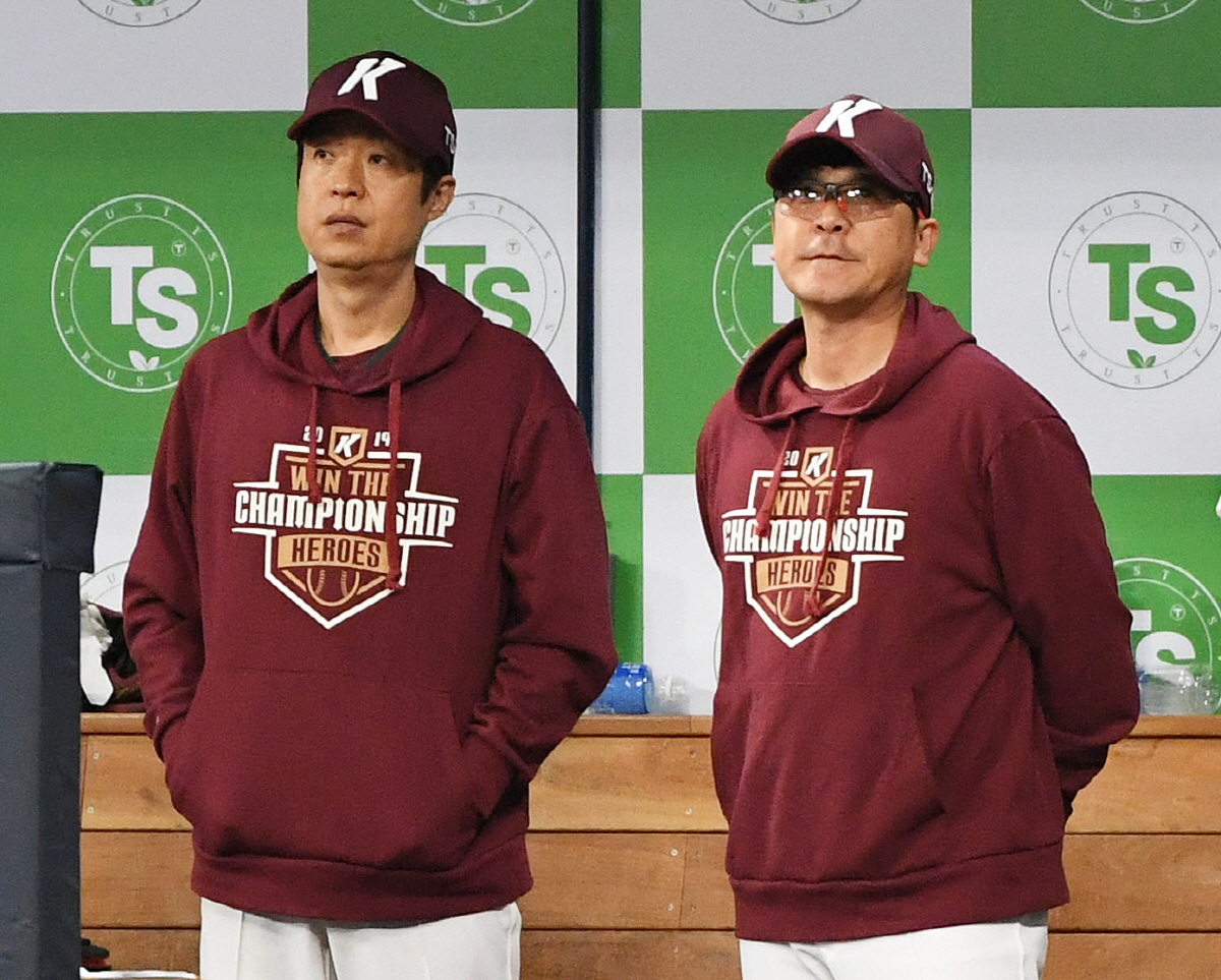 2019 KBO리그 두산과 키움의 한국시리즈 4차전이 26일 오후 고척스카이돔에서 열렸다. 키움 장정석 감독과 허문회 코치가 경기를 지켜보고 있다. 고척=정재근 기자 cjg@sportschosun.com/2019.10.26/