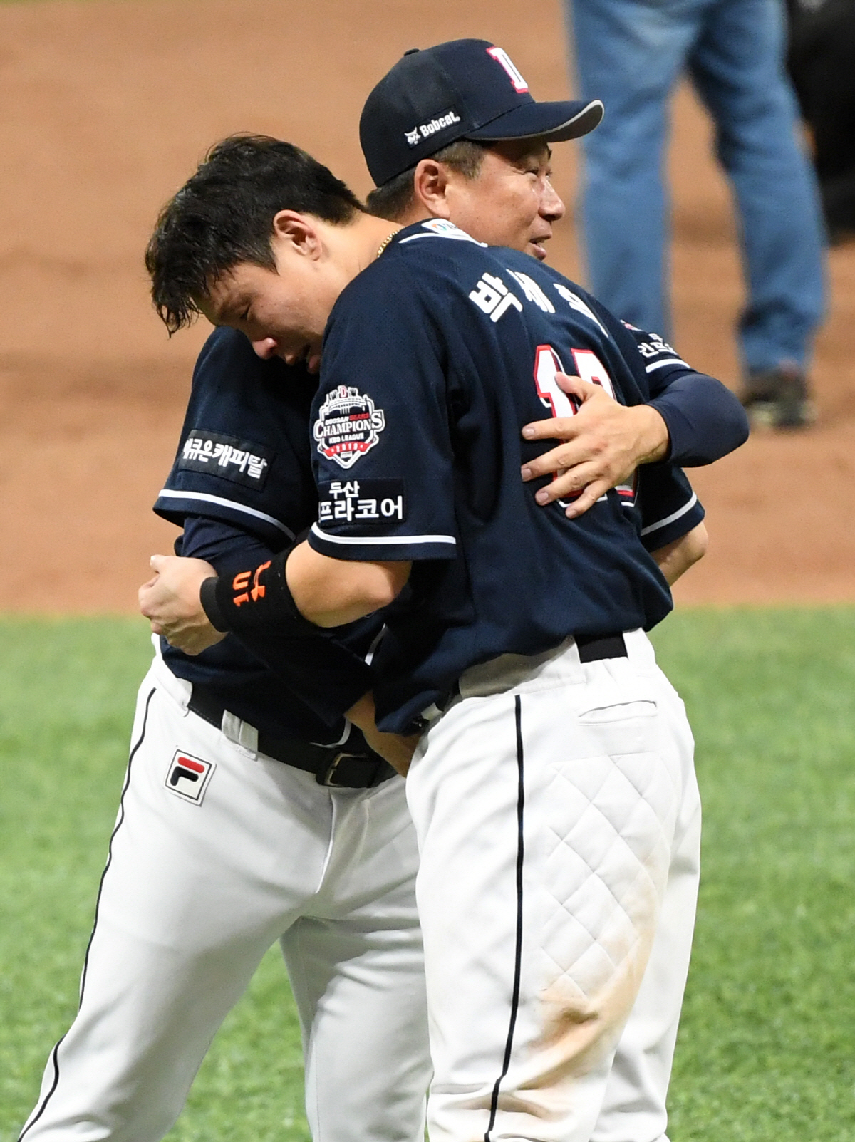 세혁이가 잘했다. 내가 포수 출신이라 포수들에게 애정이 간다. 2차전 뺄 때 그대로 갈까 하다가 빼줘야한다고 생각했다. 영하와 사인 잘 안맞았고 점수주면 포수들은 다 본인 탓이라고 생각한다. 그러면 분위기가 다운된다. 3차전서 너무 잘해줬고 오재일이 중요할 때 워낙 잘해줬지만 이런 큰 경기를 리드하는게 쉽지 않다. 수고가 많았다. MVP를 못받았지만 MVP나 다름없다.