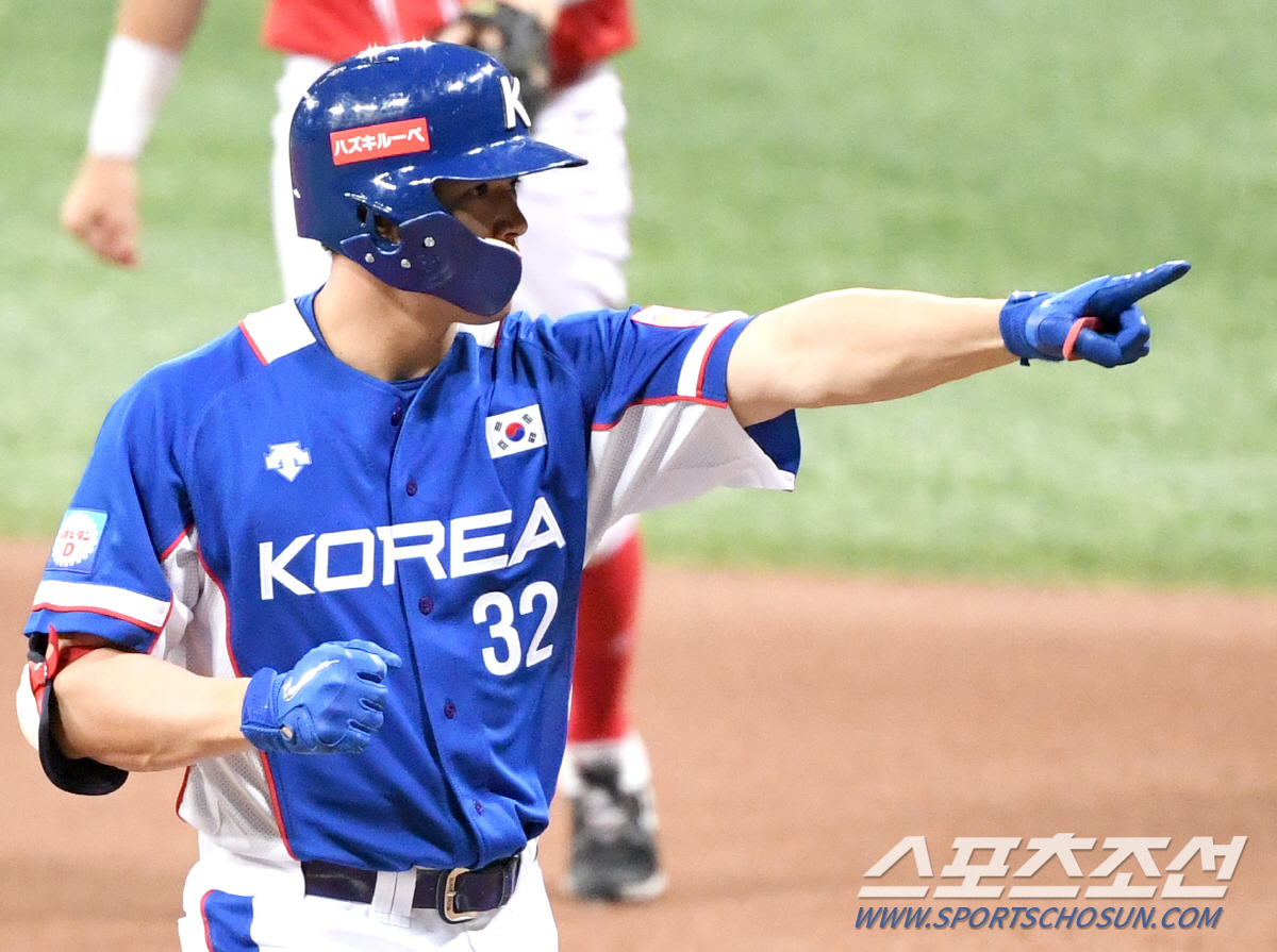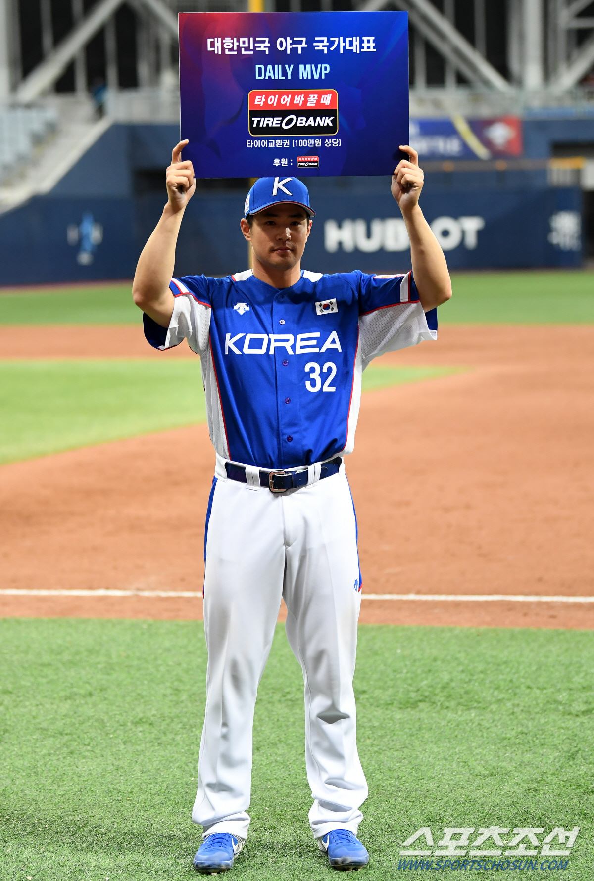 2019 WBSC 프리미어 12 서울 예선 라운드 대한민국과 캐나다의 경기가 7일 오후 서울 구로구 고척동 고척스카이돔에서 열렸다. 데일리 MVP 김재환. 고척=박재만 기자 pjm@sportschosun.com/2019.11.07/