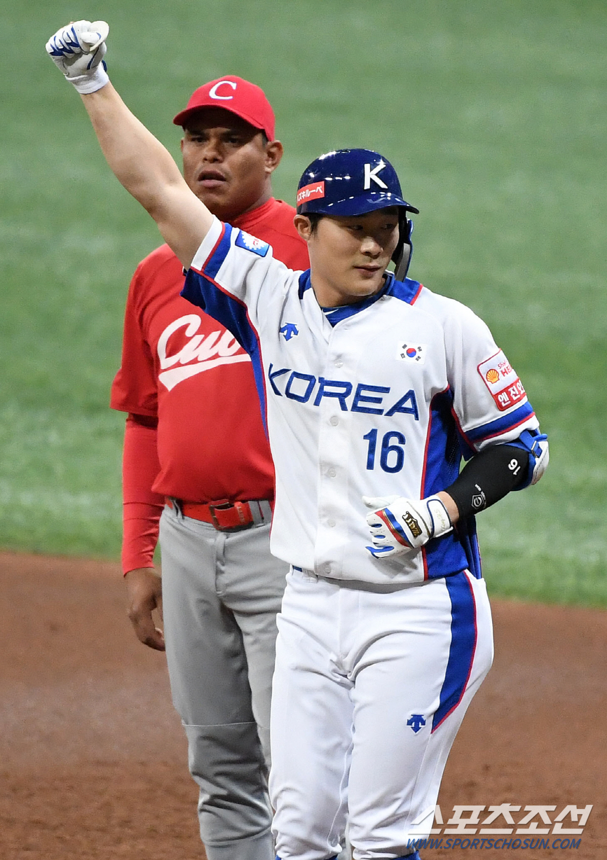 2019 WBSC 프리미어 12 서울 예선 라운드 대한민국과 쿠바의 경기가 8일 서울 고척스카이돔에서 열렸다. 5회말 1사 1, 2루 김재환이 안타 때 2루주자 이정후가 홈인하고 있다. 고척=정재근 기자 cjg@sportschosun.com/2019.11.07/