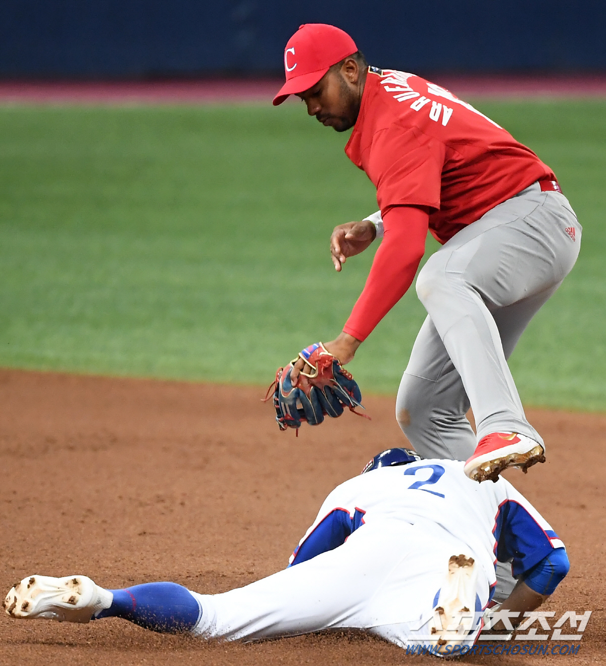2019 WBSC 프리미어 12 서울 예선 라운드 대한민국과 쿠바의 경기가 8일 서울 고척스카이돔에서 열렸다. 6회말 2사 1루 한국 박민우가 2루를 훔치고 있다. 고척=박재만 기자 pjm@sportschosun.com/2019.11.08/