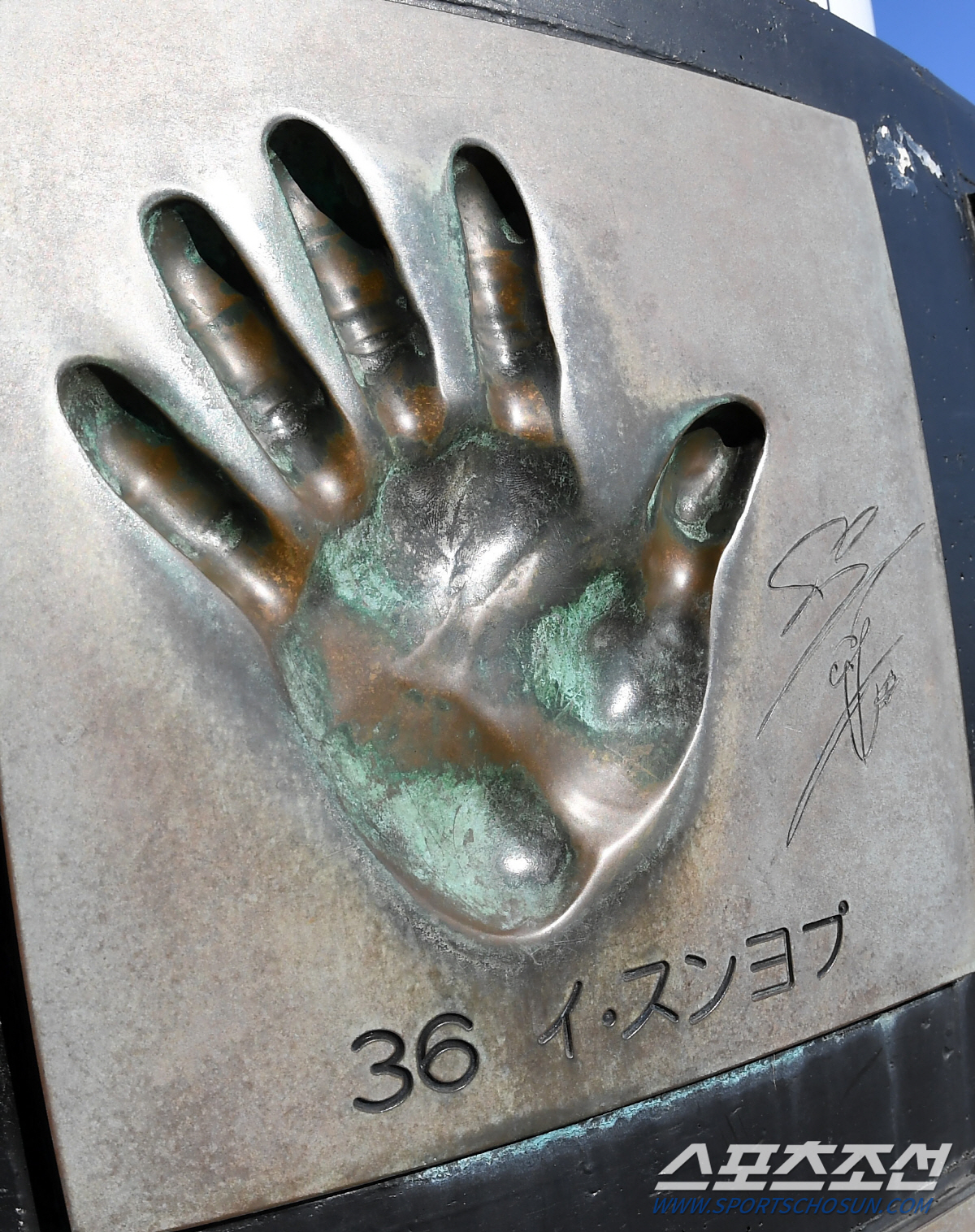 '2019 세계야구소프트볼연맹(WBSC) 프리미어12' 슈퍼라운드에 진출한 6개국 훈련이 10일 오후 일본 지바현 ZOZO마린 스타디움에서 진행됐다. 이승엽의 핸드프린팅 모습. 지바현(일본)=박재만 기자 pjm@sportschosun.com/2019.11.10/
