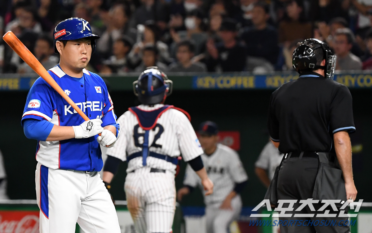 '2019 WBSC 프리미어12' 슈퍼라운드 대한민국과 일본의 경기가 16일 일본 도쿄돔에서 열렸다. 7회초 2사 1,2루 한국 양의지가 삼진을 당하고 있다. 도쿄(일본)=박재만 기자 pjm@sportschosun.com/2019.11.16/