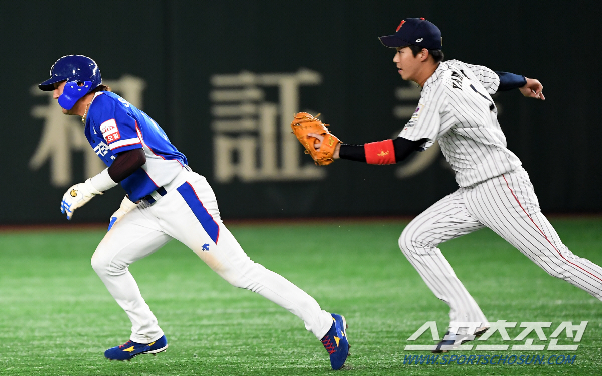 '2019 WBSC 프리미어12' 결승전 대한민국과 일본의 경기가 17일 일본 도쿄돔에서 열렸다. 5회초 1사 1루 한국 김하성의 삼진 때 1루 주자 김상수가 오버런에 걸려 태그아웃 당하고 있다. 도쿄(일본)=박재만 기자 pjm@sportschosun.com/2019.11.17/