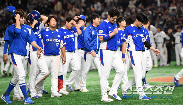 '2019 WBSC 프리미어12' 슈퍼라운드 대한민국과 일본의 경기가 16일 일본 도쿄돔에서 열렸다. 경기에서 10대8로 패배한 한국 선수들이 아쉬워하고 있다. 도쿄(일본)=박재만 기자 pjm@sportschosun.com/2019.11.16/