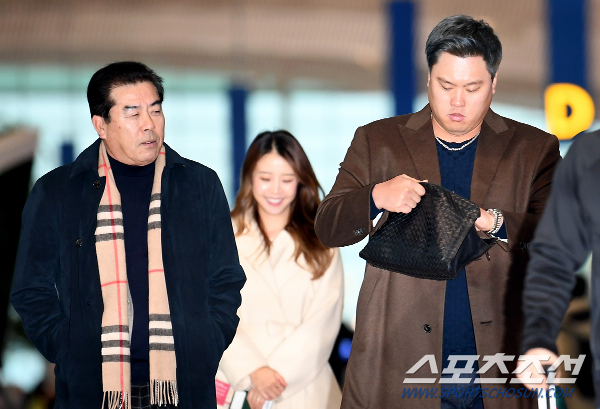 이날 류현진은 청바지와 코트 등 편안한 옷차림이었지만, 푸른색과 흰색이 섞인 듯한 색다른 머리색이 눈에 띄었다. 출국장으로 향하는 발걸음은 가벼웠고, 가족들을 향한 애정표현은 여유로웠다. 아내 배지현의 미모도 여전했다.