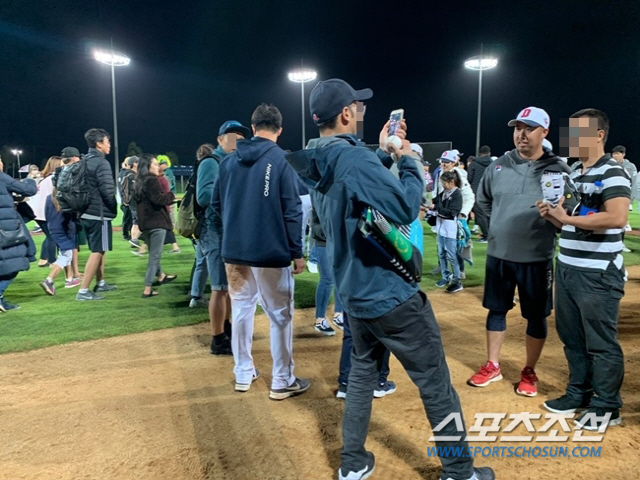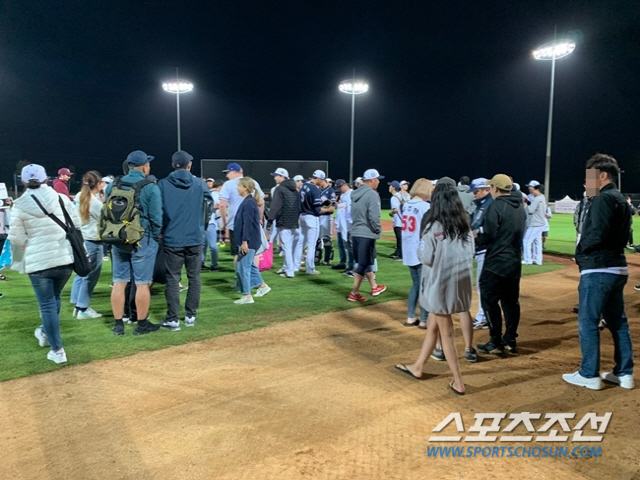 [질롱(호주)=스포츠조선 나유리 기자]김태형 감독의 아이디어로 그라운드 위에서 훈훈한 깜짝 팬미팅이 펼쳐졌다.