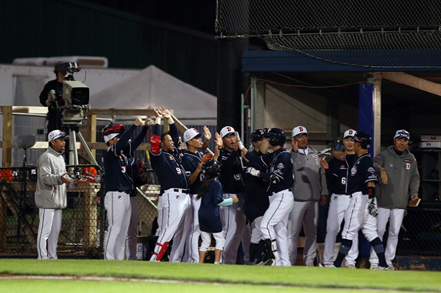 [질롱(호주)=스포츠조선 나유리 기자]역시 '디펜딩 챔피언'다웠다. 두산 베어스가 첫 연습경기에서 호주 국가대표를 완파했다. 시작이 좋다.