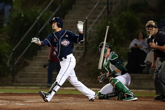 [질롱(호주)=스포츠조선 나유리 기자]감 좋은 김재호가 연습 경기 첫 실전부터 3안타에 홈런까지 터뜨렸다.
