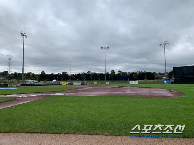 [질롱(호주)=스포츠조선 나유리 기자]천둥번개를 동반한 폭우가 쏟아지면서 두산 베어스와 호주 대표팀의 두번째 연습 경기가 아쉽게 취소됐다.