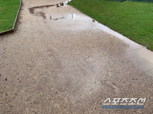 하지만 날씨가 경기를 방해했다. 17일은 하루종일 햇빛이 쨍쨍한 맑은 날씨가 이어졌지만, 18일 새벽부터 비가 쏟아지기 시작했다. 내내 훈련하는 날마다 날씨가 좋지 않았던 두산이다. 특히 오전에는 천둥 번개를 동반한 장대비가 쉼없이 쏟아져 긴급 대책 회의에 들어갔다. 오후에 접어들어 비는 그쳤으나 문제는 경기장 상태였다. 컨디션이 매우 좋은 경기장은 아니다보니 그라운드 곳곳에 물웅덩이가 생겼다. 연습 경기인만큼 무리할 필요는 없었다. 미끄러운 그라운드 상태 때문에 선수들의 부상도 염려가 됐다. 또 저녁에도 비 예보가 있어서 최종 취소가 결정됐다.