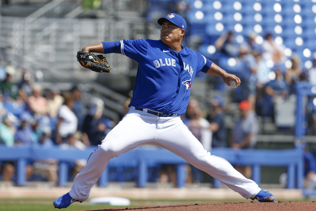 토론토 블루제이스 류현진이 지난 10일(한국시각) 탬파베이 레이스와의 시범경기에서 힘차게 공을 던지고 있다. 사진=USATODAY-AP연합뉴스