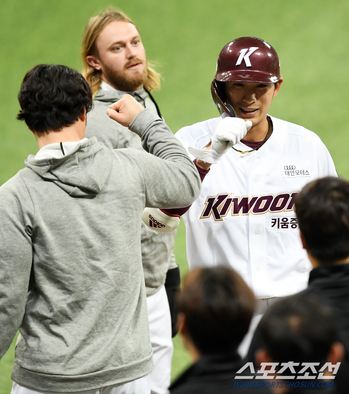 키움 히어로즈와 LG 트윈스의 2020 KBO리그 연습경기가 27일 서울 고척스카이돔에서 열렸다. 9회말 2사 만루 대타 키움 이정후가 끝내기 안타를 날린 뒤 기뻐하고 있다. 고척=박재만 기자 pjm@sportschosun.com/2020.04.27/