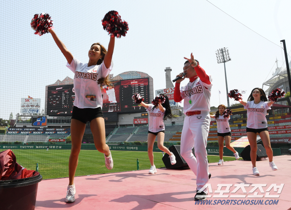 [인천=스포츠조선 권인하 기자]1일 인천 SK행복드림구장에서 열린 키움 히어로즈와 SK 와이번스의 마지막 시범경기. 1루측 응원단상에 SK 응원단이 자리했다. 이닝 중간 치어리딩 쇼를 하고 SK 타자들이 공격할 때 응원가를 부르면서 응원전을 펼쳤다. 관중도 없는 상황이라 그저 SK 선수단에 힘을 불어넣기 위한 것이라 생각했지만 아니었다. SK가 중계방송을 통해 경기를 보고 있는 팬들을 위해 온라인 응원전을 펼친 것이다.