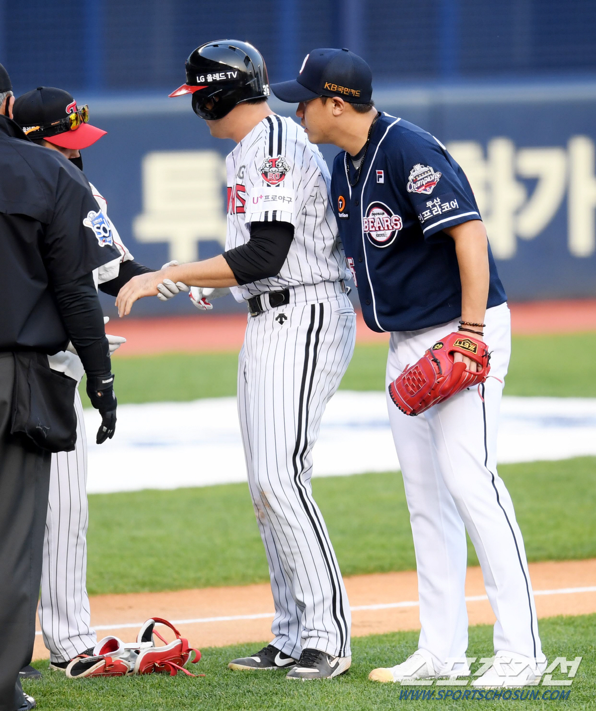 [잠실=스포츠조선 노재형 기자] LG 트윈스 이형종이 투구에 손등을 맞아 부상을 입었다.