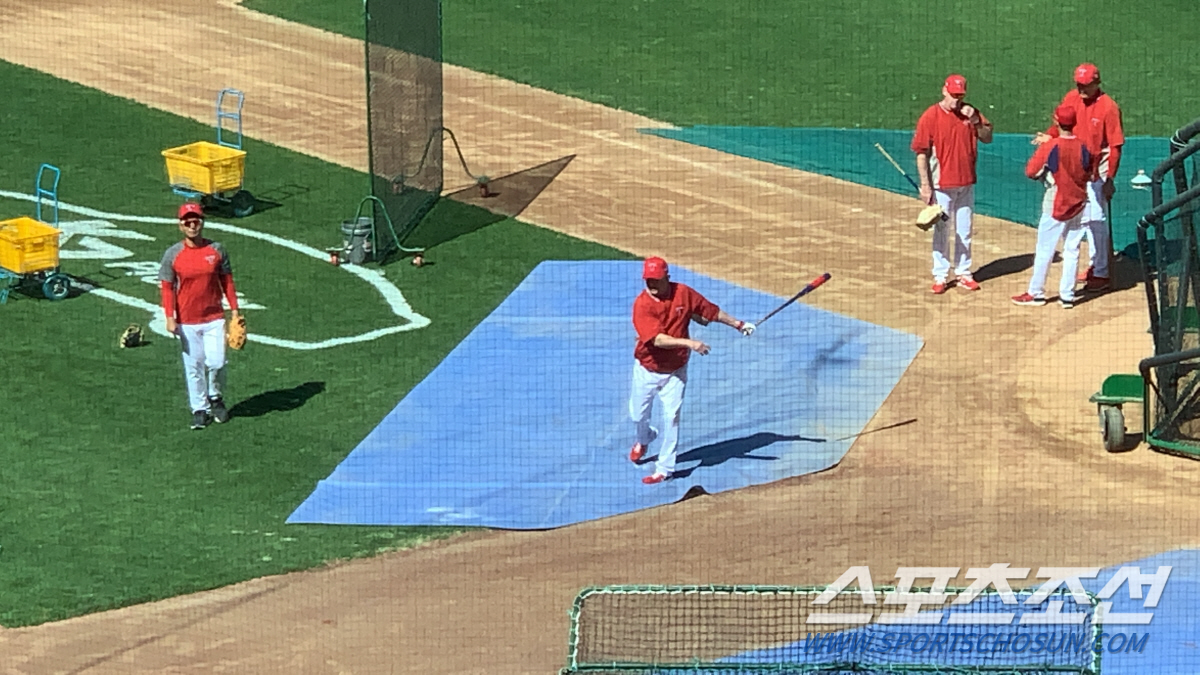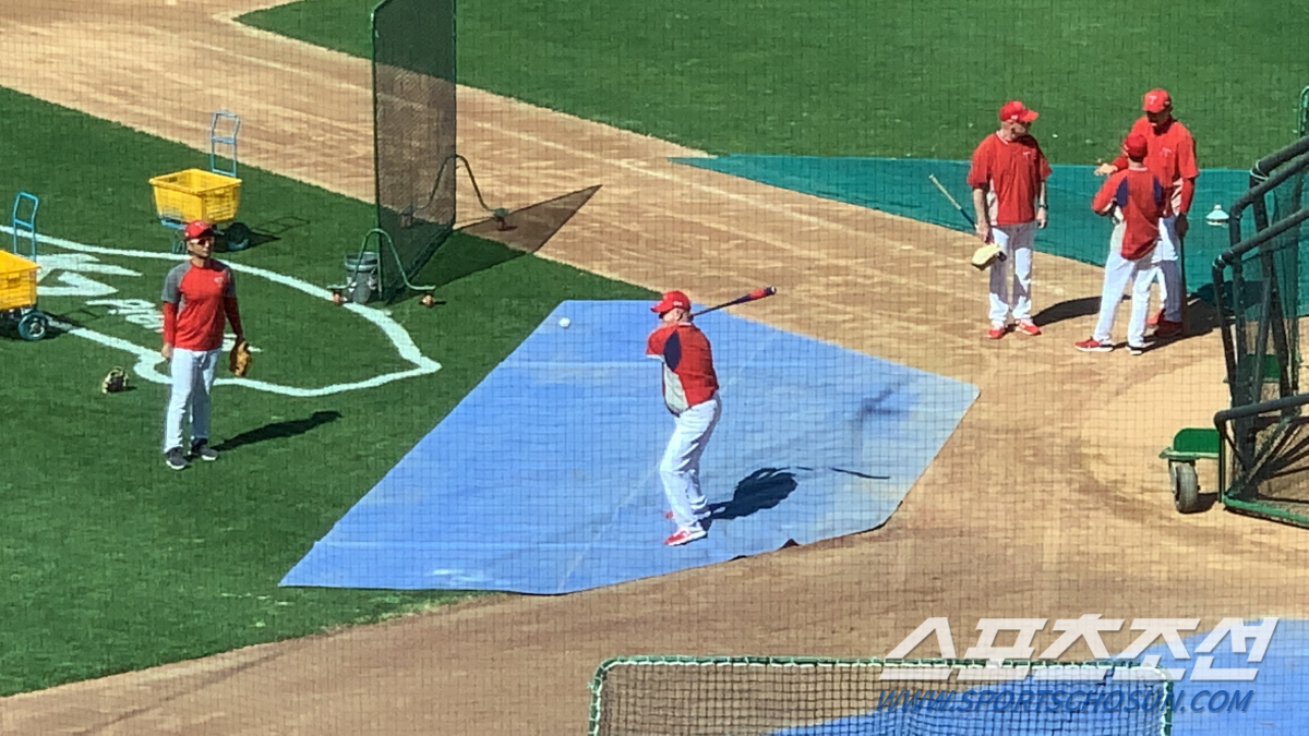 미국 플로리다 스프링캠프부터 훈련 때는 변함없이 펑고 배트를 휘두른 위더마이어 수석코치는 이날 선수들이 스트레칭을 하는 동안 티볼 배팅까지 소화하면서 스스로 감각을 조율했다. 환갑이 넘은 나이지만 배팅 파워는 여전했다. 간결한 스윙이었지만, 현역선수의 배팅볼처럼 강하게 그물을 때렸다.