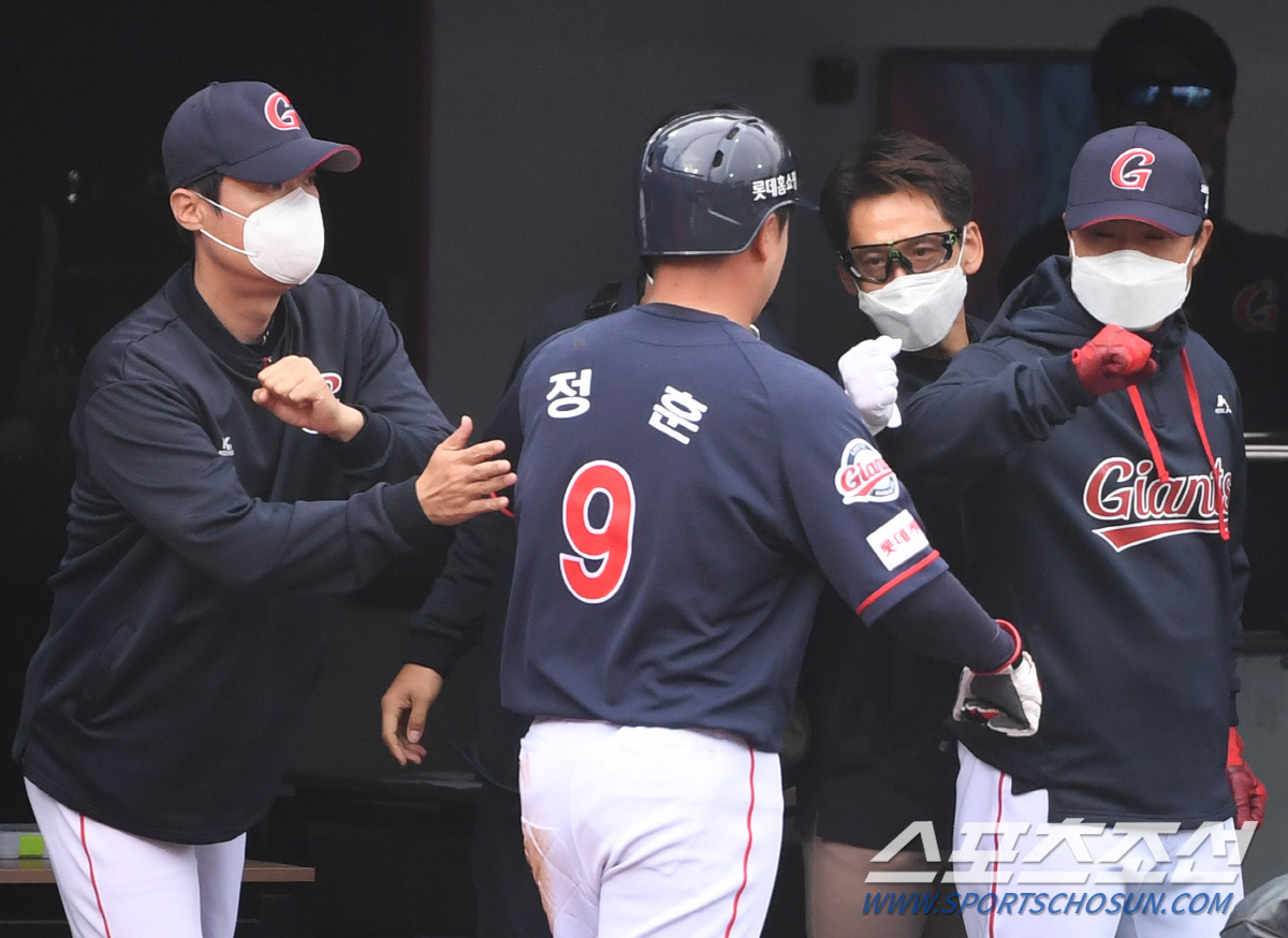 정 훈은 KT 쿠에바스와의 2B2S 승부에서 가운데로 몰린 공에 미련없이 방망이를 돌렸다. 높게 뜬 공은 여유롭게 담장을 넘기는 3점짜리 홈런으로 연결됐다.