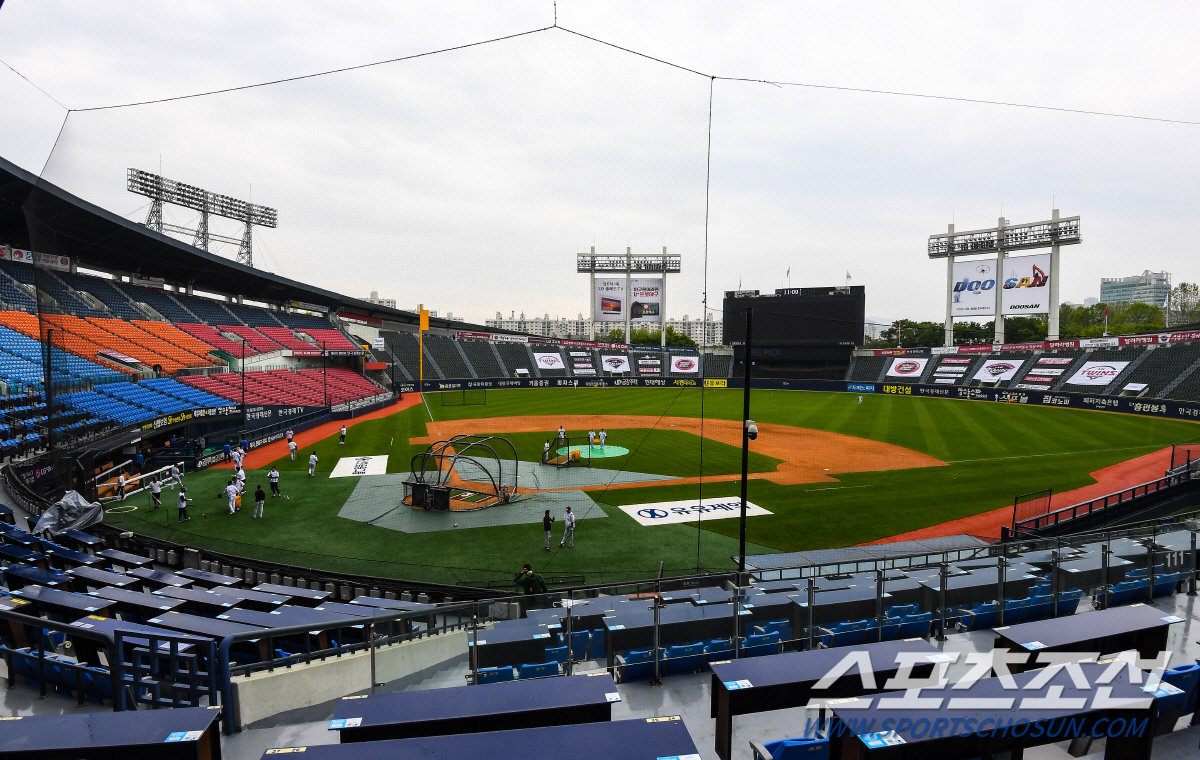 LG 트윈스와 두산 베어스의 2020 KBO리그 개막전을 앞두고 양 팀 선수들이 5일 서울 잠실야구장에서 훈련을 가졌다. 경기 전 경기장에 비가 내리고 있다. 잠실=박재만 기자 pjm@sportschosun.com/2020.05.05/