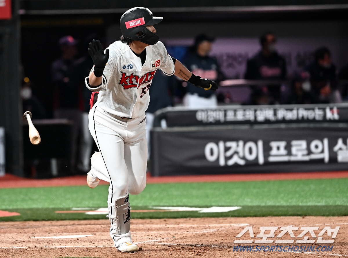 결정적 순간 김민혁의 방망이가 또다시 빛을 발했다. 연장 10회초 2사 2루에서 NC 임창민을 상대로 우중간을 가르는 3루타를 만든 것. 불안한 침묵을 이어가던 KT 더그아웃은 또다시 열광했고, 김민혁도 비로소 환한 미소를 지어 보였다. 그러나 KT는 이어진 수비에서 이대은이 2실점하면서 또다시 연장 패배를 맛봤다. 10일 잠실 두산 베어스전(연장 11회, 12대13), 12일 창원 NC전(연장 10회, 6대7)에 이은 3연속 연장패. 모처럼 활약으로 마음의 짐을 털어낸 김민혁이지만, 반등 계기를 만든 것에 만족할 수밖에 없었다.