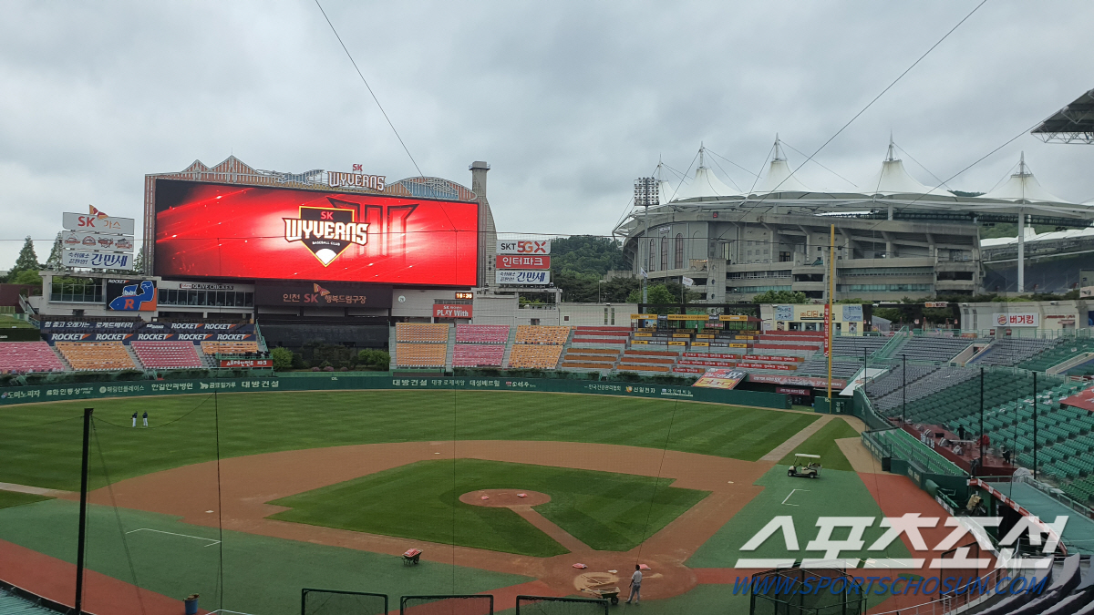 [인천=스포츠조선 권인하 기자]인천 SK행복드림구장에 방수포가 걷혔다. 본격적인 경기 준비에 들어갔다.