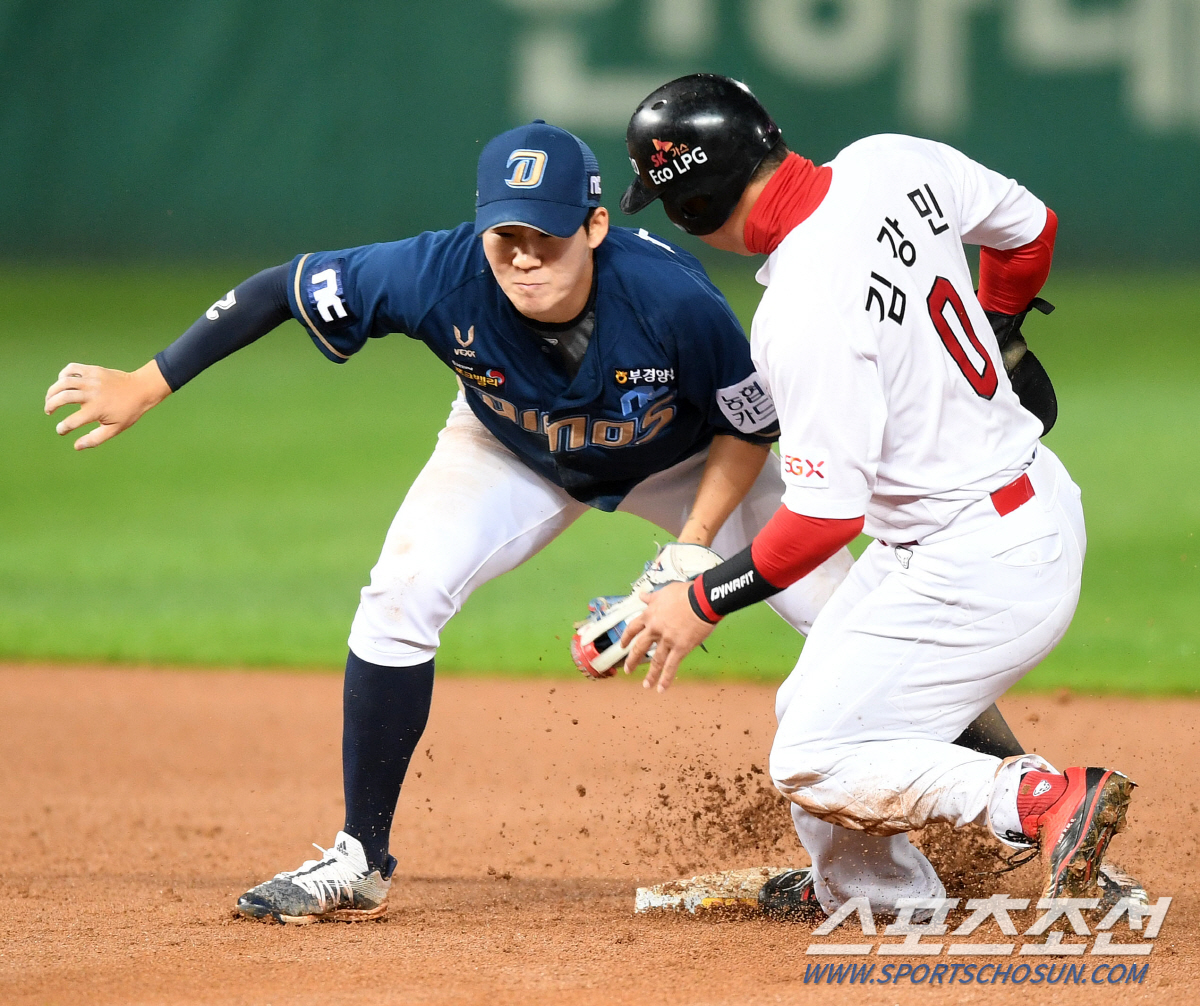 2020 KBO리그 NC 다이노스와 SK 와이번스의 경기가 15일 인천 SK행복드림구장에서 열렸다. 8회말 2사 1루 SK 최정 타석 때 1루주자 김강민이 2루도루를 실패하고 있다. 인천=정재근 기자 cjg@sportschosun.com/2020.05.15/