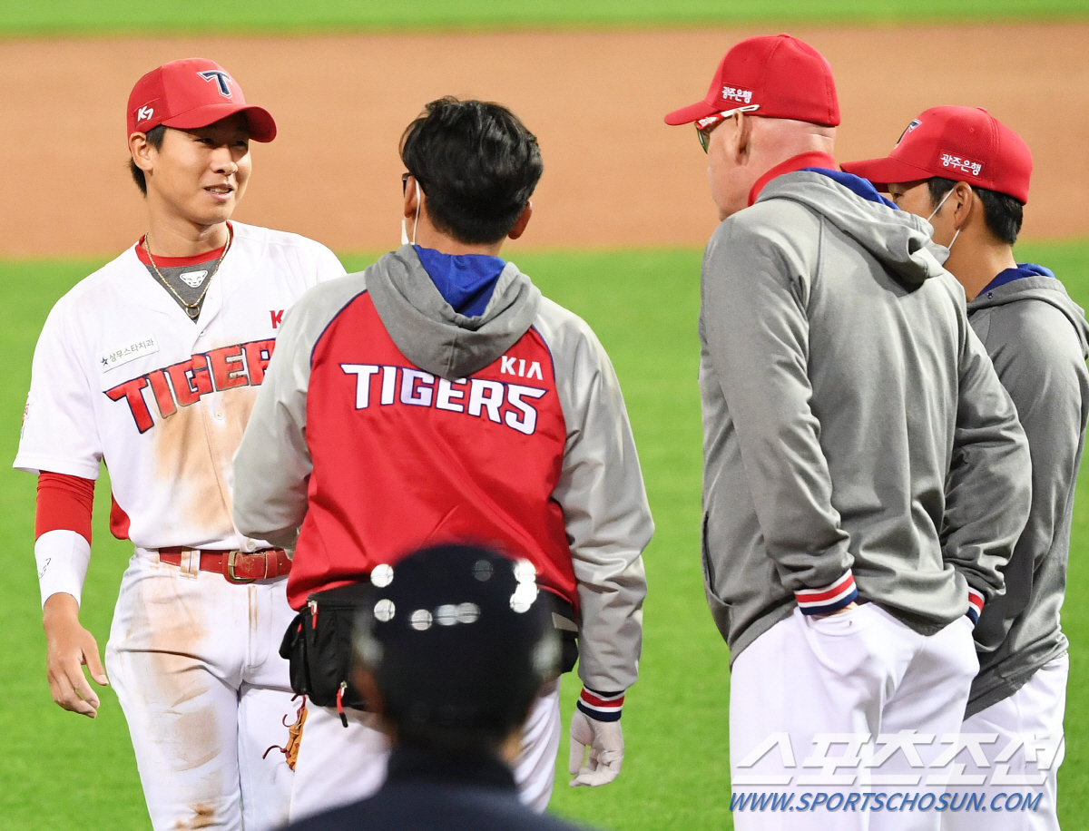 [광주=스포츠조선 김진회 기자] 본능적인 행동이었는데 KBO리그에선 약간 생소한 장면이 19일 연출됐다.