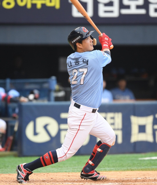 [광주=스포츠조선 김진회 기자] 롯데 자이언츠의 나종덕이 2군 경기에서 홈런을 때려냈다.
