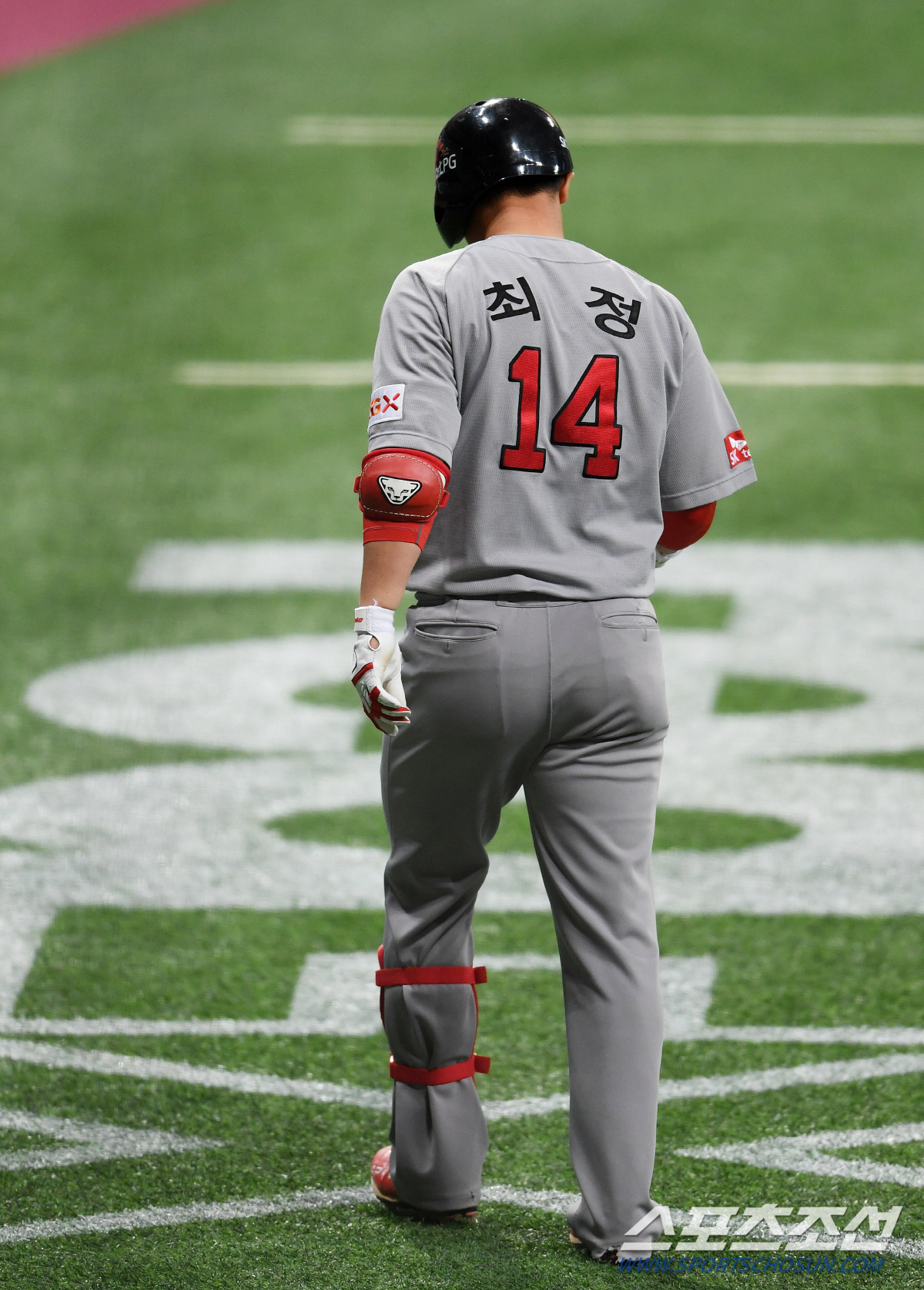2020 KBO리그 SK 와이번스와 키움 히어로즈의 경기가 20일 서울 고척스카이돔에서 열렸다. 1회초 1사 1루 SK 최정이 삼진 아웃된 후 아쉬워하고 있다. 고척=정재근 기자 cjg@sportschosun.com/2020.05.20/