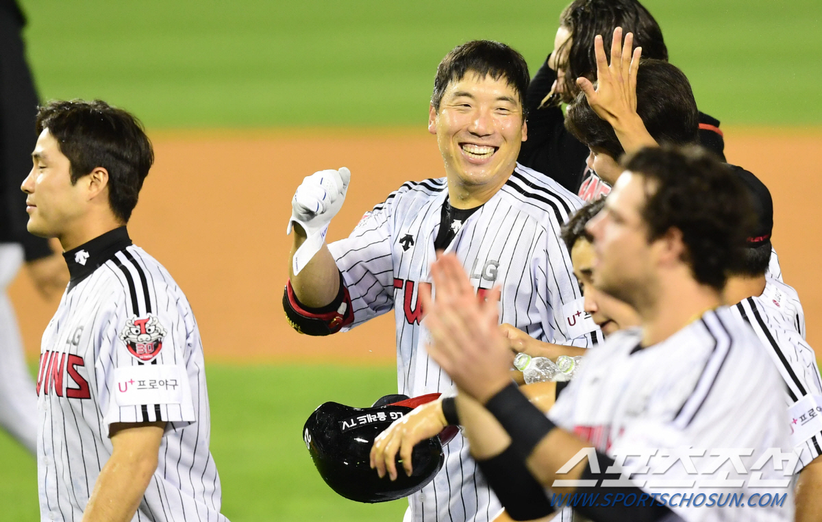 2020 KBO리그 LG트윈스와 KT위즈의 경기가 22일 서울 잠실야구장에서 열렸다, LG 김현수가 9회말 1사 만루에서 끝내기 적시타를 치고 동료들과 환호하고 있다. 잠실=최문영 기자 deer@sportschosun.com