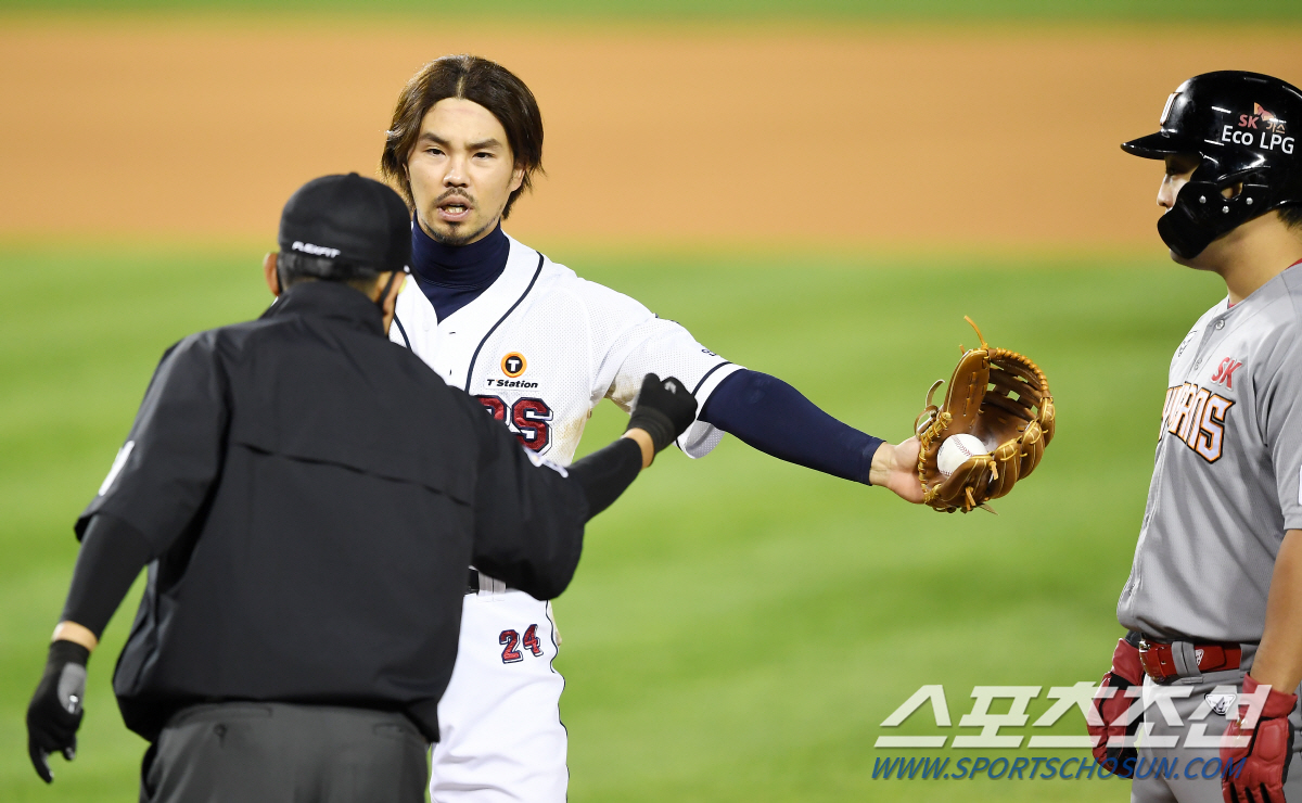 이튿날인 27일 SK전을 앞두고 만난 김태형 감독은 "시도는 잘했는데 상황이 그랬다. 오재원은 스리피트 아웃이라고 생각해서 태그를 한 것 같다. 그 상황에서는 2루에 갔다가 1루에 가면 타구가 느렸기 때문에 (힘든 상황이라)오재원이 승부를 한 것이다. 내가 나가서 심판들에게 물어보니 주자가 올 때까지는 스리피트에 벗어나지 않았다는 답변을 들었다"고 설명했다.