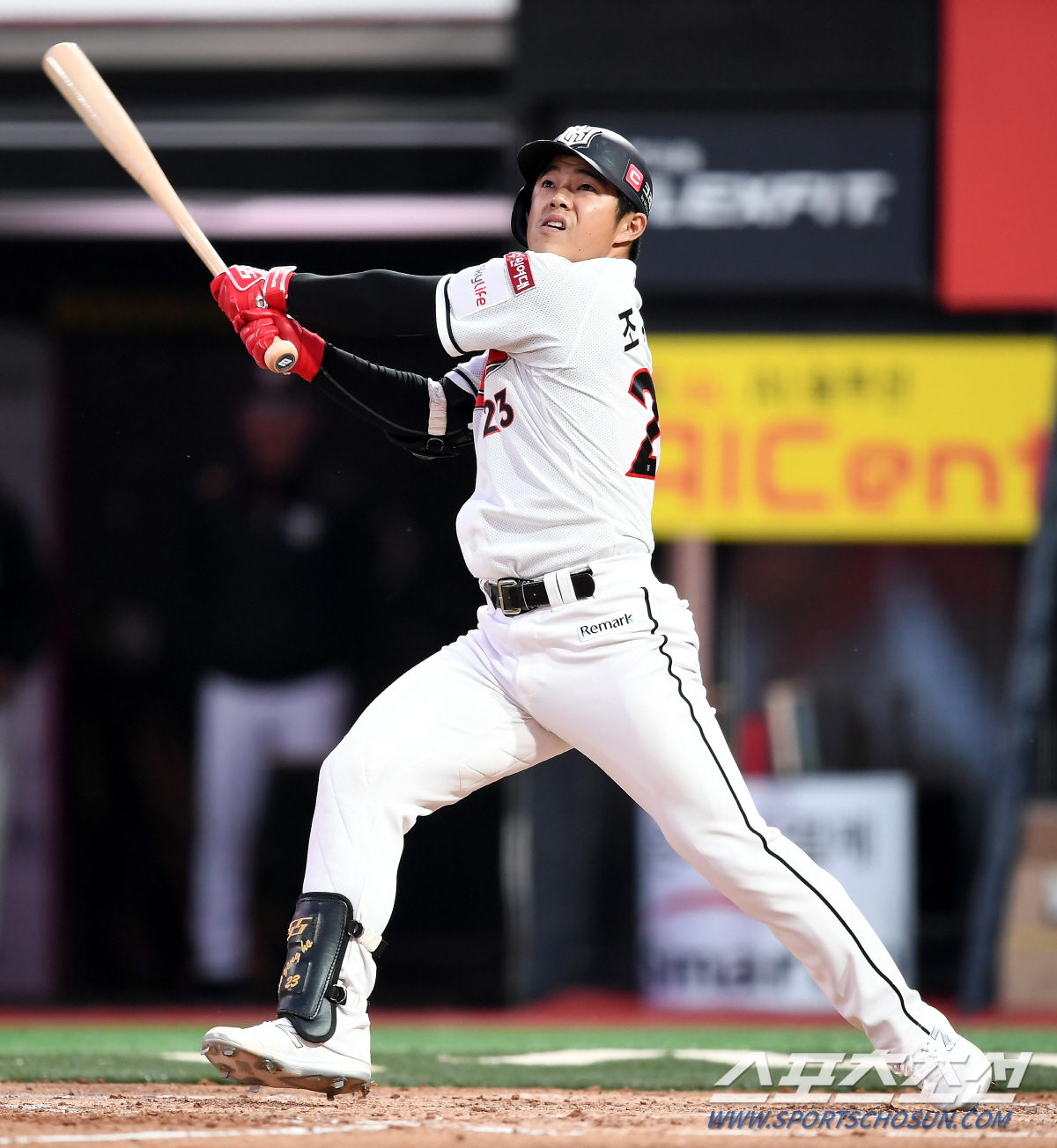 KT는 1-0으로 앞선 4회에도 추가득점에 성공했다. 무사 1루 상황에서 로하스가 밀어친 타구가 좌측 담장 펜스를 때리고 튕겨나왔다. 1루 주자 조용호는 빠른 발로 홈을 밟았다. 이후 2사 3루 상황에서 배정대가 좌전 적시 2루타를 때려내면서 다시 한 점을 달아났다.