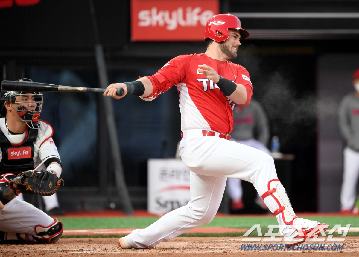 이날 2번 타자 겸 우익수로 선발출전한 터커는 상대 선발 소형준의 142km짜리 초구 직구를 통타, 우중간 담장을 넘기는 홈런을 때렸다. 비거리 125m