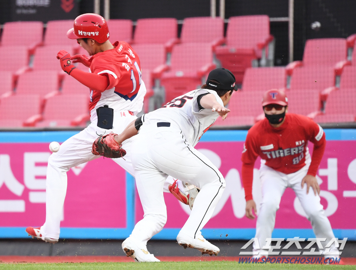 28일 수원 케이티위즈파크에서 KBO리그 KT 위즈와 KIA 타이거즈의 경기가 열렸다. 2회 KIA 김규성이 KT 오태곤의 실책으로 1루에 출루하고 있다. 수원=송정헌 기자 songs@sportschosun.com/2020.05.28/